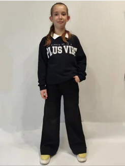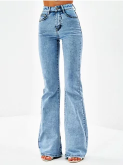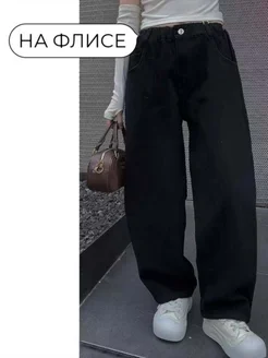 Джинсы палаццо утепленные широкие подростковые на резинке