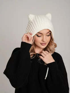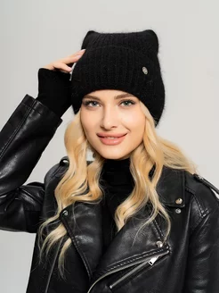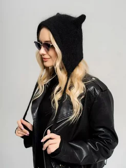 Шапка из ангоры вязаная женская с ушками кошки