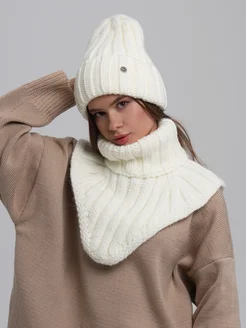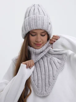 Комплект шапка объемная вязаная с манишкой теплая