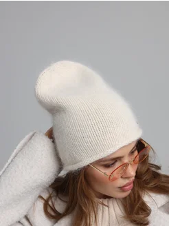 Шапка вязаная без отворота бини из ангоры