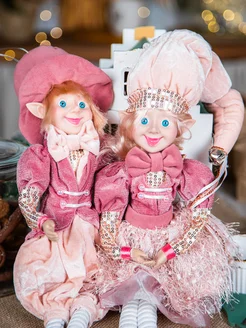 Новогодняя интерьерная фигурка кукла эльф пара