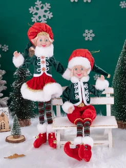 Новогодняя кукла интерьерная фигурка эльф под елку на ножках