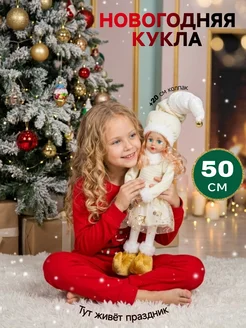 Новогодняя кукла интерьерная эльф под елку на ножках