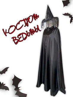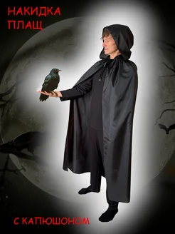 Плащ карнавальный костюм черный мантия накидка с капюшоном