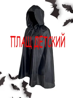 плащ накидка карнавальный костюм детский черный с капюшоном