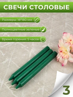 Свечи столовые зеленые полноцветные 18*180 мм 3 шт