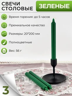 Свечи столовые полноцветные 20х200 мм зеленые 3 шт