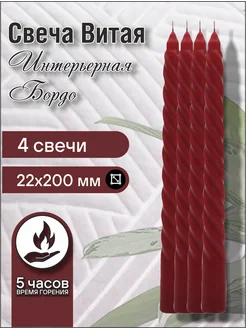 Свеча витая бордовая, 2 упаковки по 2 шт