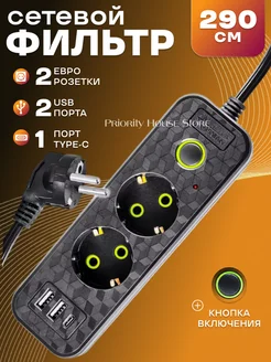 Сетевой фильтр удлинитель на 2 розетки и 2 USB
