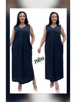 Платье без рукавов из 100% Льна с защипом