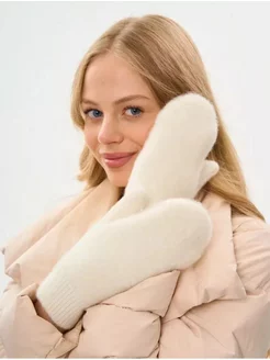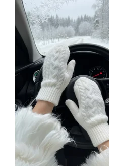 Варежки вязаные шерстяные зимние теплые пушистые рукавицы