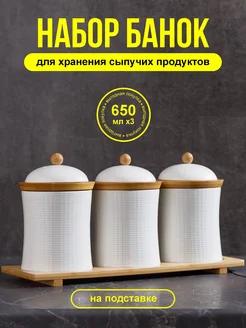 Набор банок для хранения фарфоровые на подставке 3 шт