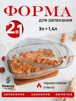 Форма для запекания стеклянная с крышкой 3000 и 1400 мл