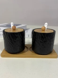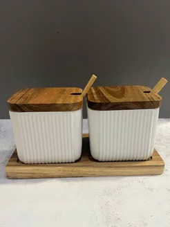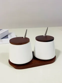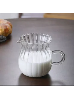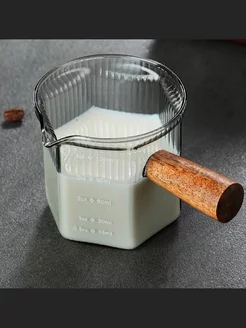 Соусник стеклянный, молочник с деревянной ручкой и мерником