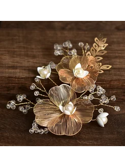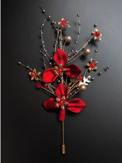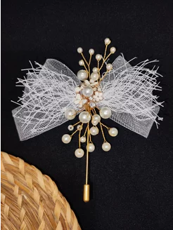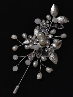Бутоньерка для жениха свадебная с бусинами металлическая