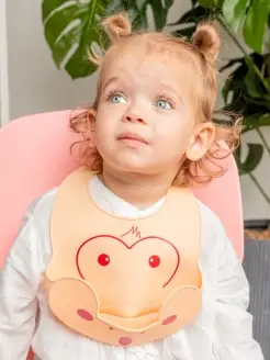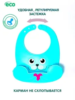 Нагрудник детский силиконовый с карманом для кормления