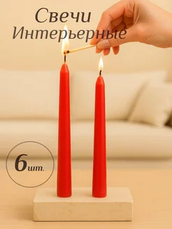 Свечи длинные столовые декоративные для дома 25 см, 6 шт