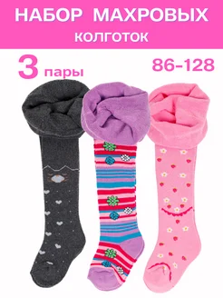 Колготки для девочки теплые махровые однотонные набор