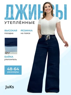 Джинсы широкие утепленные большие размеры на резинке