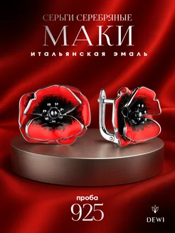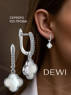 Серьги пусеты Клевер из серебра 925 пробы с ониксом