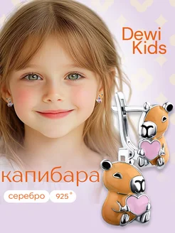 Серьги детские из серебра 925 пробы Капибара