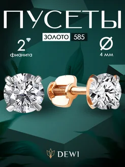 Серьги золотые 585 гвоздики с фианитами