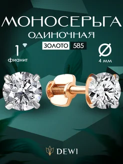 Серьга золотая 585 гвоздик с фианитом