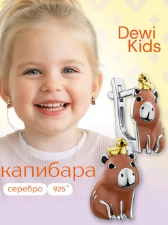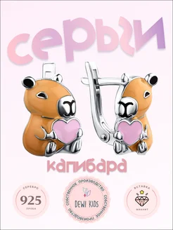 Серьги серебряные детские Капибара