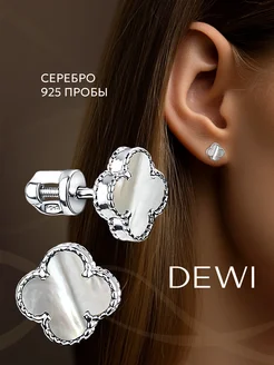 Серьги пусеты Клевер из серебра 925 пробы с перламутром