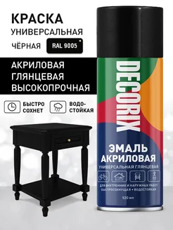 Аэрозольная краска эмаль черная глянцевая в баллончике 520мл