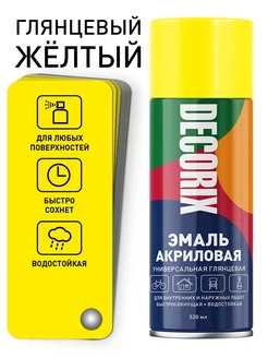 Аэрозольная краска эмаль желтая глянцевая в баллончике 520мл