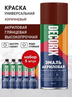 Аэрозольная краска эмаль коричневая глянцевая универсал 5 шт