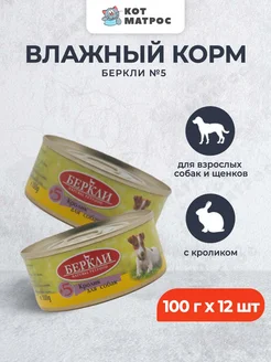 №5 влажный корм для собак и щенков,кролик,100г x 12шт