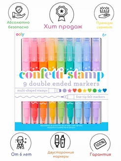 Набор двусторонних цветных фломастеров со штампами, 9шт