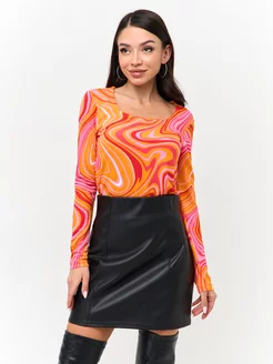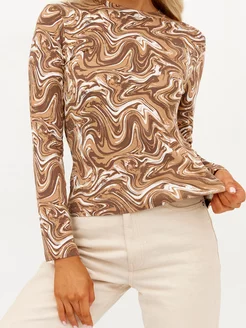 Лонгслив тонкий трикотажный с воротом кофта с рисунком