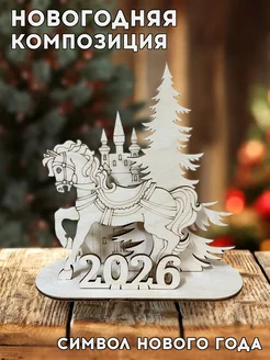 Новогодняя композиция символ года 2026 Лошадь и замок