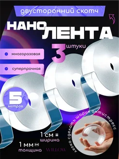 многоразовая двусторонняя 5м нано скотч 3 шт