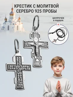 Крестик на крещение серебряный с молитвой на шнурке
