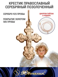 Крестик серебряный позолоченный на шнурочке гайтане