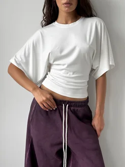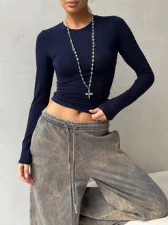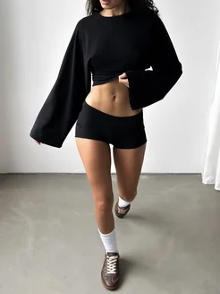 Лонгслив облегающий с широкими рукавами летучая мышь