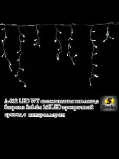 Гирлянда светодиодная-бахрома белая 3x0.6м 140LED 220В.8 реж