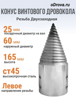 Конус винтового дровокола D 60 мм L 165 внутренний D 25 мм