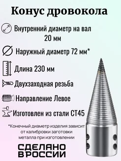 Конус винтового дровокола D 72 мм L 230 внутренний D 20 мм