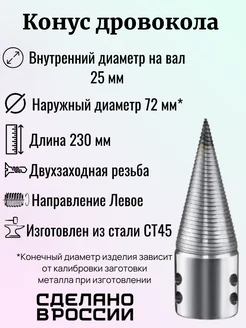 Конус винтового дровокола D 72 мм L 230 внутренний D 25 мм