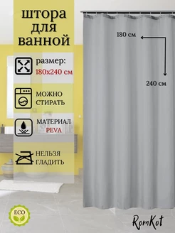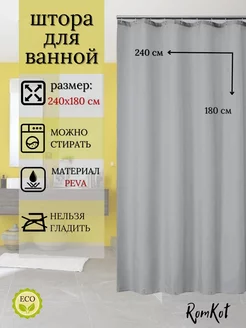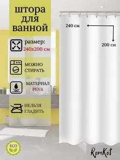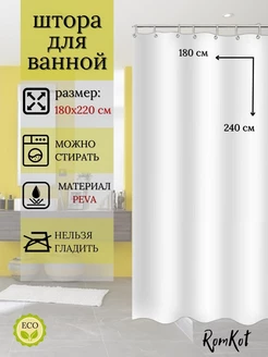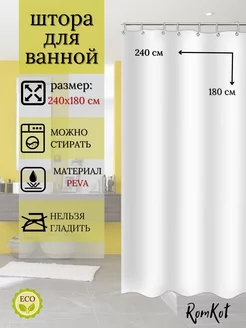 Длинная штора для ванной непрозрачная 180x240 белого цвета