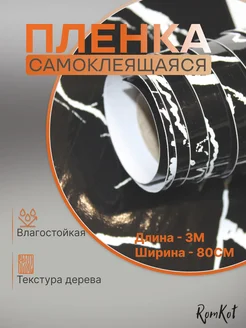 Самоклеящаяся пленка для мебели 80см ширина черная с белым