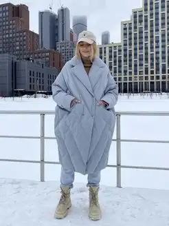 Пуховик длинный оверсайз с капюшоном влагонепроницаемый