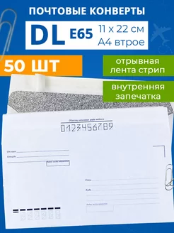 Конверты бумажные почтовые Е65 DL для А4 А5 - 50 шт