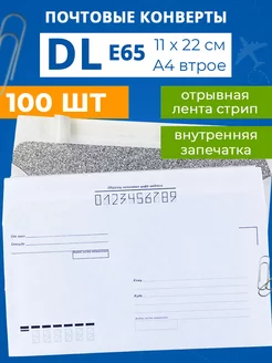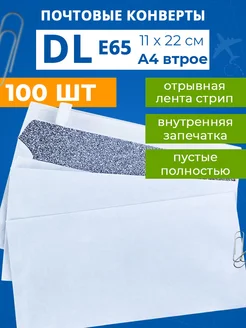 Конверты бумажные почтовые Е65 DL для А4 А5 - 100 шт
