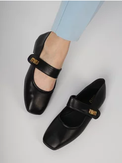 Балетки с квадратным носом и ремешком